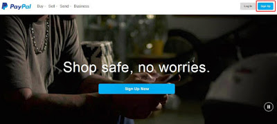 1. Masuk ke website Paypal di www.paypal.com kemudian pilih "Sign Up".